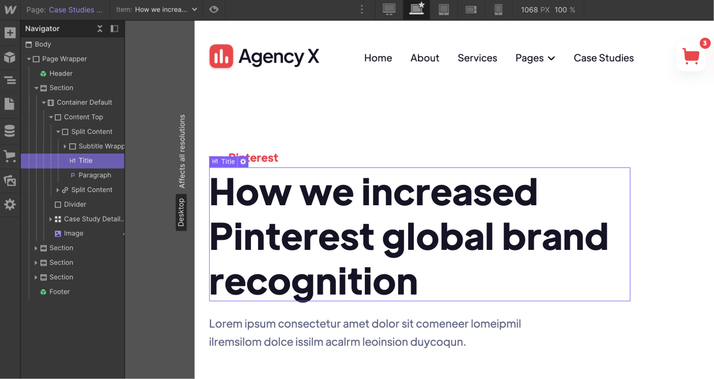 As you could see above, Agency X was built on Webflow using the best practices to make it very easy for you to edit the template and customize it to your needs.